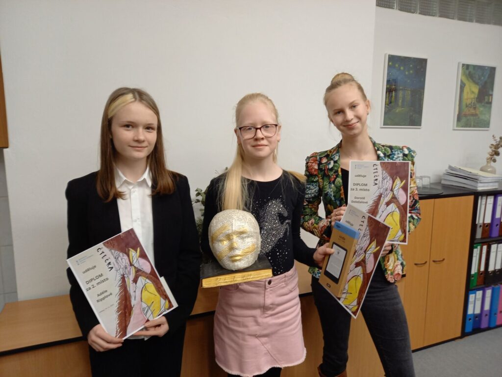 Letošní Svitavská čtečka byla pro naši školu obzvlášť úspěšná. V konkurenci 67 žáků a žákyň 9. ročníků a kvart z našeho regionu obsadila Adéla Ripplová 2. místo a Dorka Doležalová 3. místo, a tak 10. prosince převzaly spolu s vítězkou z poličského gymnázia diplomy z rukou paní ředitelky Mgr. Moniky Pelíškové a po krátkém a milém setkání spěchaly zpět do Litomyšle, protože odpoledne obě hrály na našich tradič